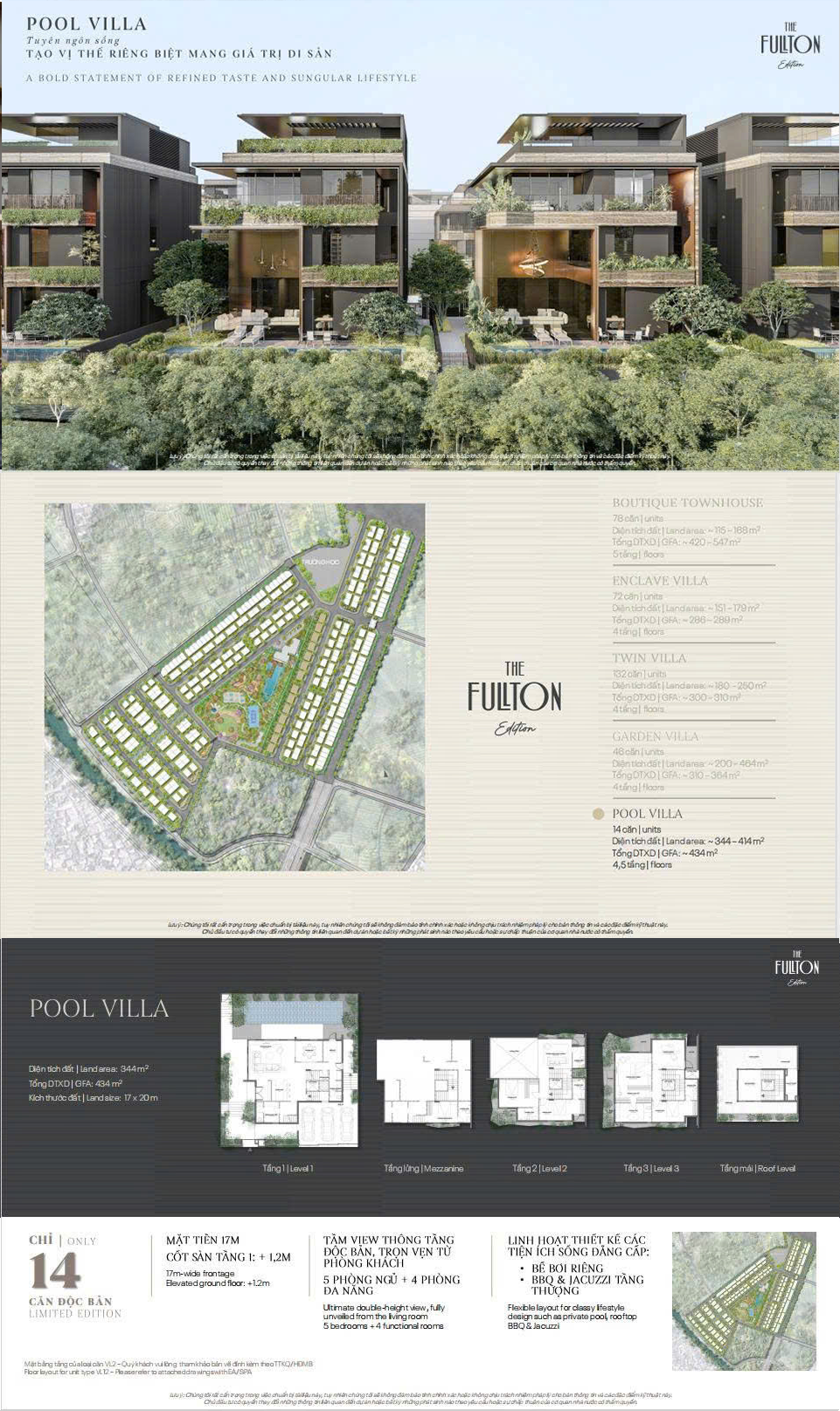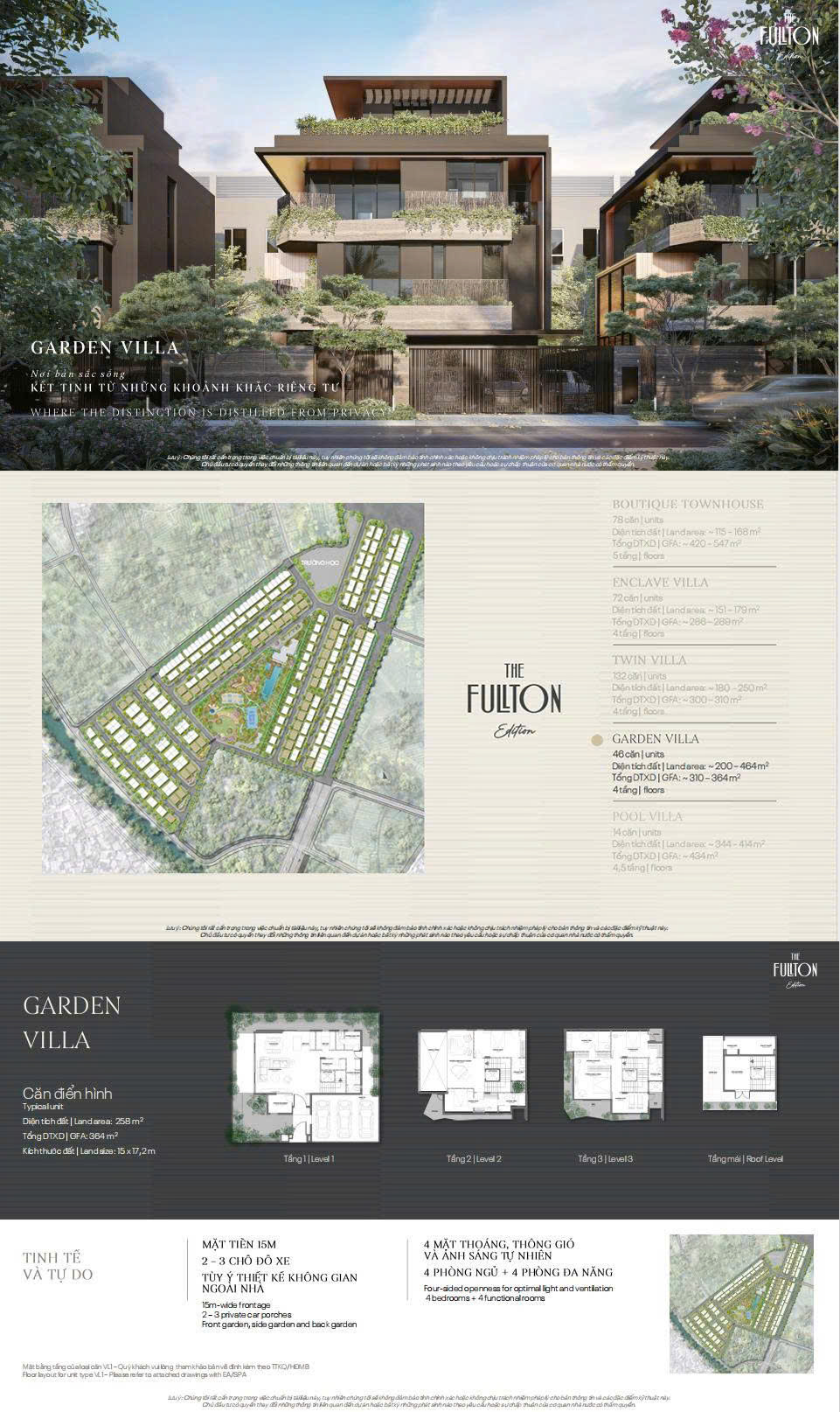 The Fullton phát triển đa dạng các dòng sản phẩm biệt thự cao cấp gồm: Boutique Townhouse, Enclave Villa, Twin Villa, Garden Villa và Pool Villa, đáp ứng linh hoạt nhu cầu an cư, nghỉ dưỡng lẫn đầu tư cho nhiều đối tượng khách hàng.