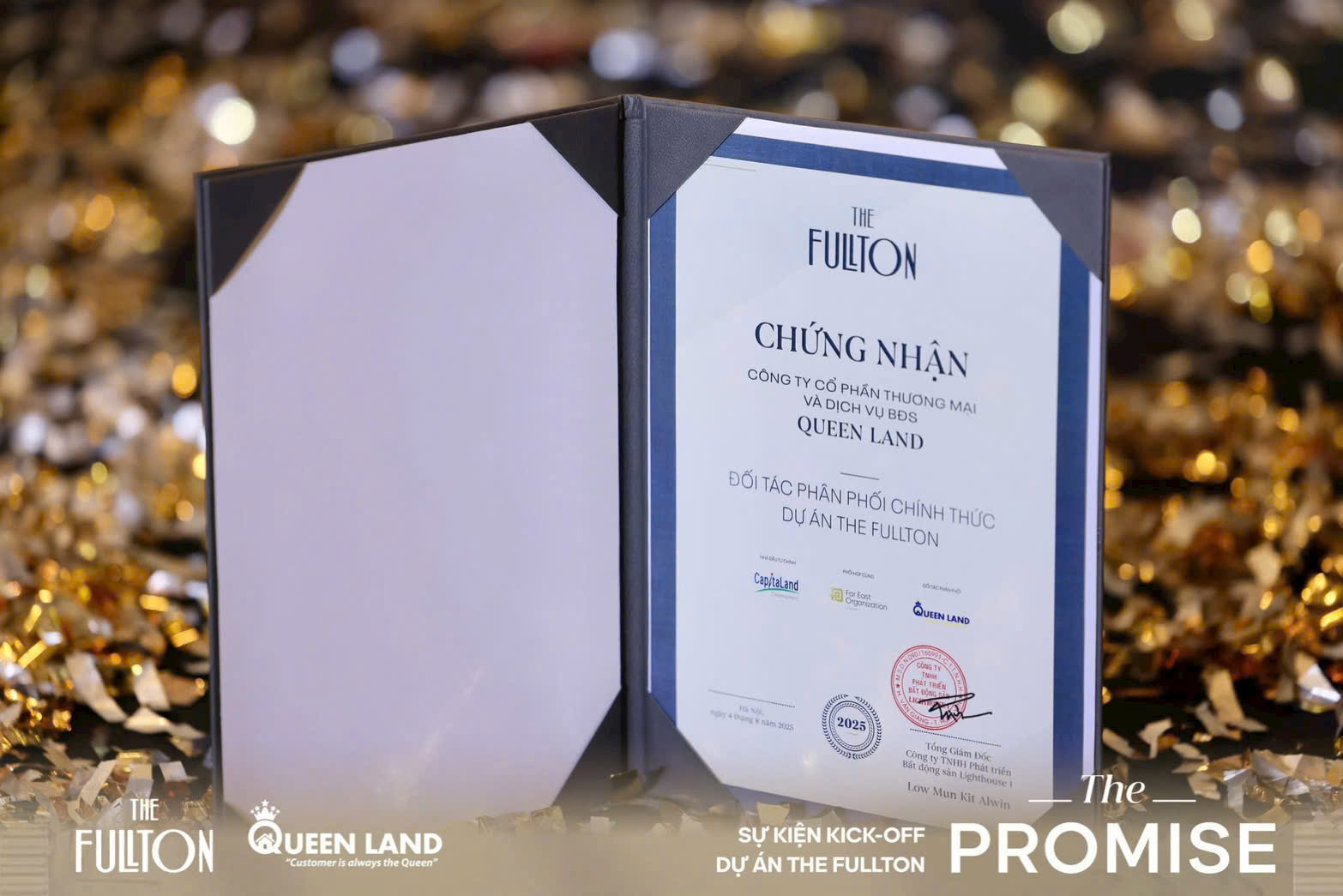 Vào tháng 8/2025, trong khuôn khổ sự kiện Kick-off chính thức của dự án The Fullton, công ty Queen Land đã vinh dự nhận chứng nhận Đối tác phân phối chính thức từ chủ đầu tư CapitaLand và các đơn vị phát triển dự án.